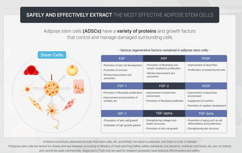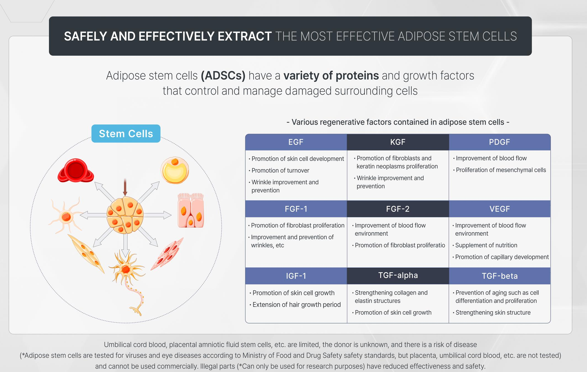 Ingredients : Adipose-derived stem cell(SR, HR), Panax Ginseng Root Extract(SR), Asparagus Officinalis Extract(HR)